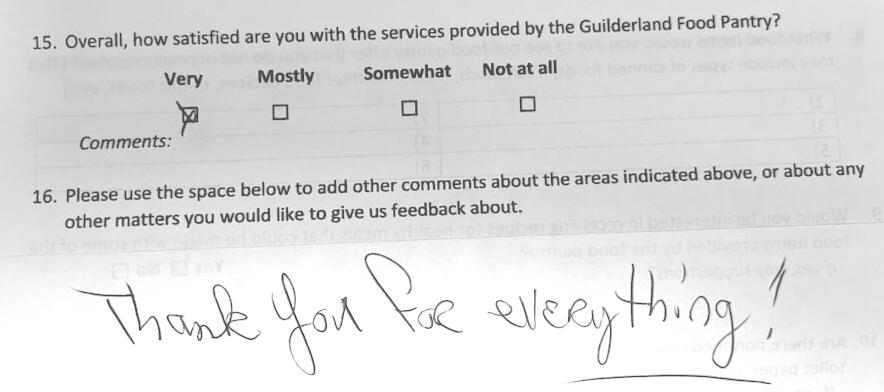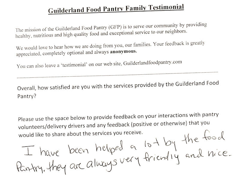 The Guilderland Food Pantry's commitment to addressing food insecurity has made a real impact on the families we serve in our community. Whether it is a handwritten thank-you note or an online testimonial, we love hearing from them!