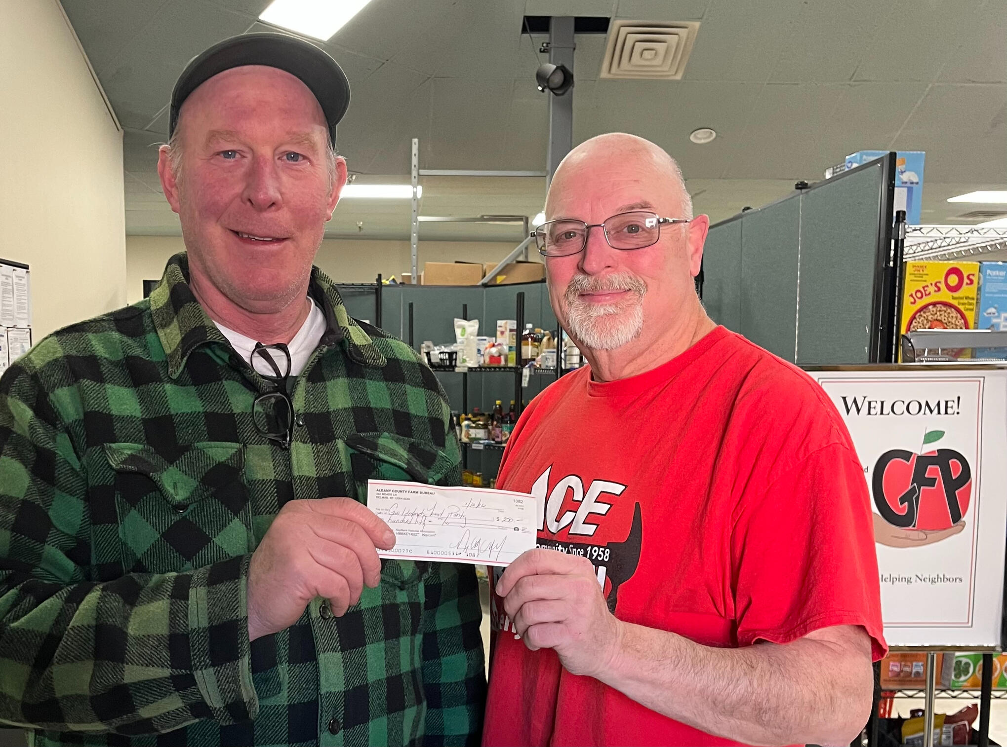 January 22, 2026 - Jim Gade from Gade Farm presented the Guilderland Food Pantry with a donation check from the Farm Bureau. He also donated 100 pounds of produce. Our many thanks to Jim and Gade Farm for their continued support!