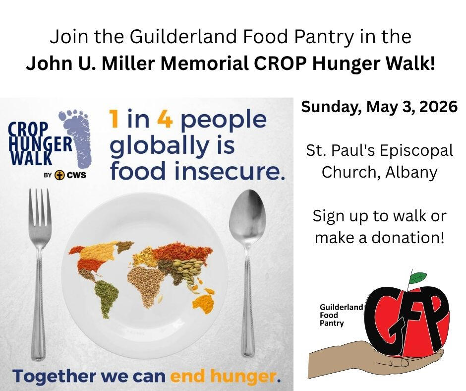 The 45th Anniversary CROP Hunger Walk in Albany will begin and end at St. Paul's Episcopal Church on Sunday, May 3. Please join us in the fight against hunger by making a donation and/or signing up to walk. Join the Guilderland Food PantryScan the QR code below to go directly to the GFP Team donor page.