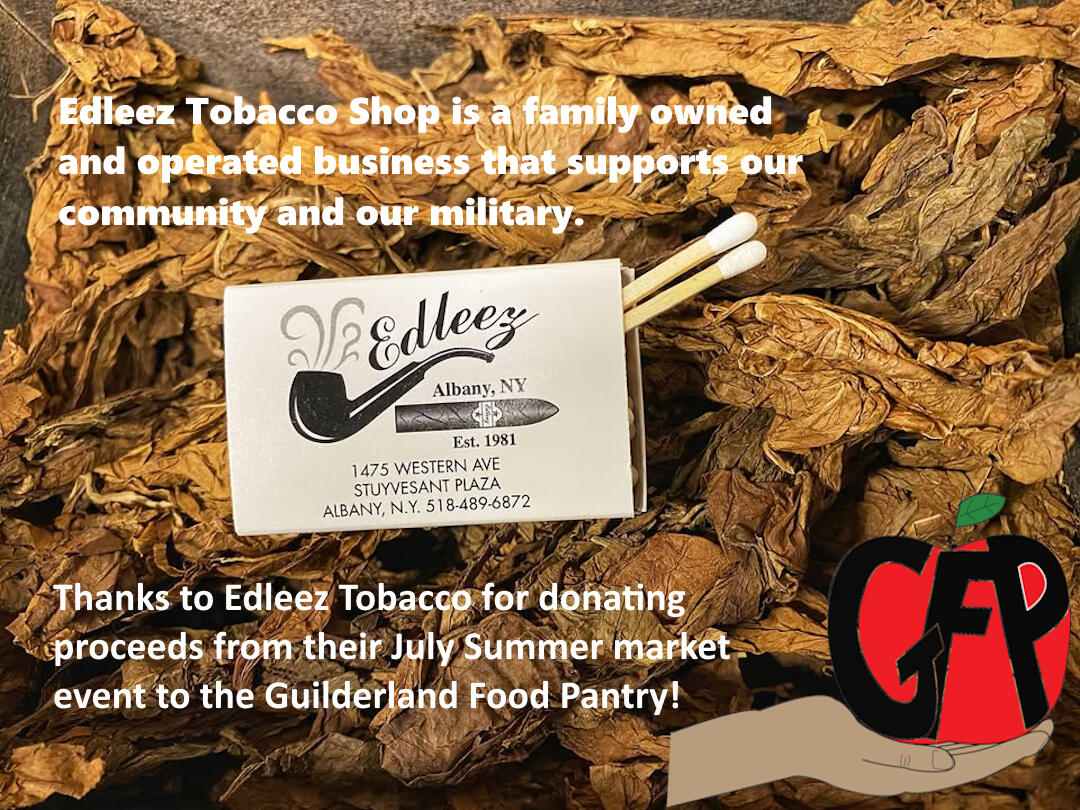 July 17, 2025 -- Thanks to Edleez Tobacco Shop for donating proceeds from their July Summer market event to the Guilderland Food Pantry. It was a great event and the proceeds will be used to help provide food for local families in need.