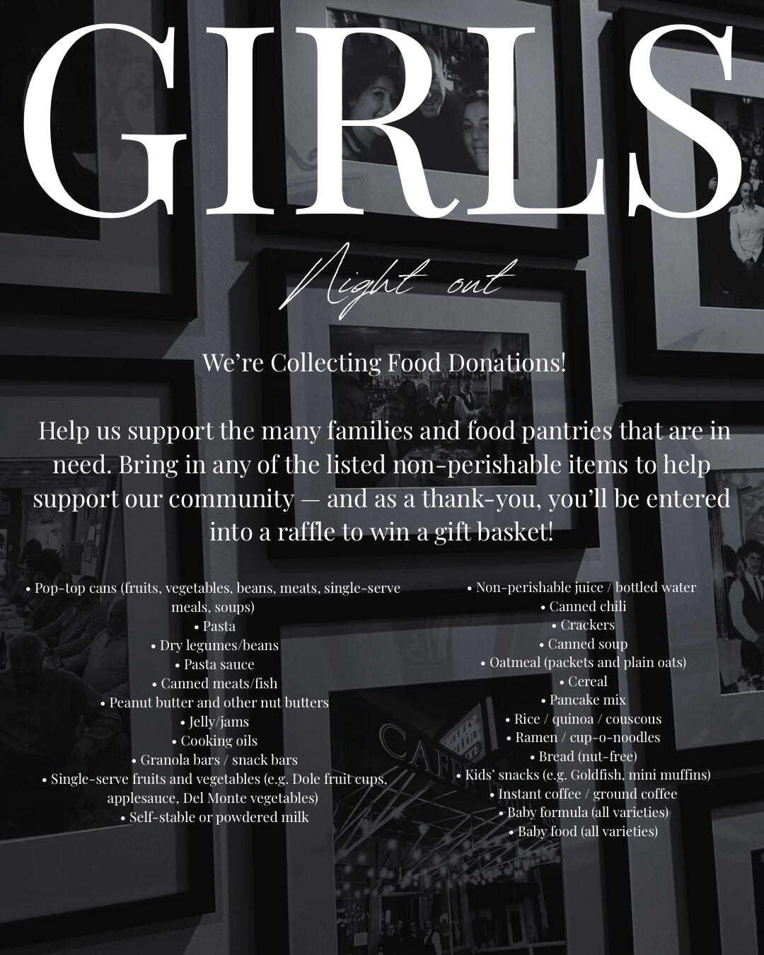 Caffe Italia is hosting their "Girls Night Out" fundraiser on Wednesday, November 12. Proceeds to benefit the Guilderland Food Pantry.
