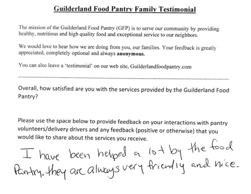 The Guilderland Food Pantry's commitment to addressing food insecurity has made a real impact on the families we serve in our community. Whether it is a handwritten thank-you note or an online testimonial, we love hearing from them!