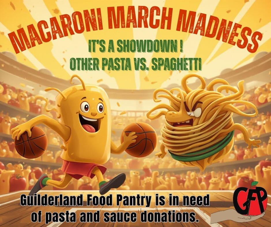 It’s Macaroni March Madness! During the month of March, we’re asking for donations of pasta (all kinds!) and pasta sauce (no glass jars, please).Fun Fact: There are over 300 different shapes of pasta, and spaghetti is the most popular.